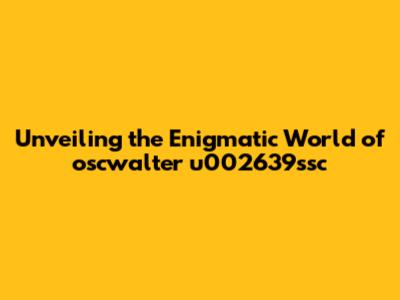 Unveiling The Enigmatic World Of Oscwalter U002639ssc