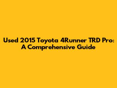 Used 2015 Toyota 4Runner TRD Pro: A Comprehensive Guide