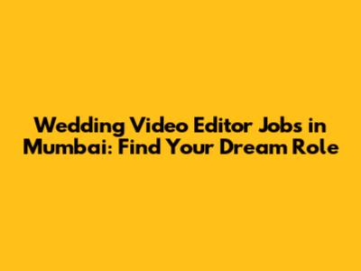 Wedding Video Editor Jobs In Mumbai: Find Your Dream Role